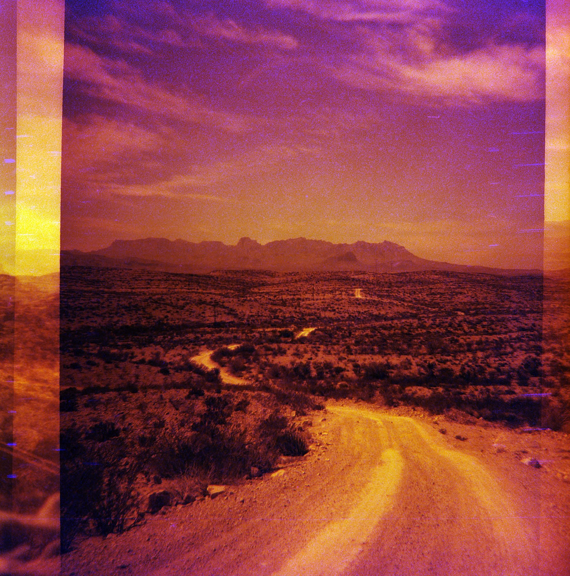 While we were at Big Bend in March, I loaded a roll of Cinestill’s Redrum into my Diana camera and decided to go for 16 exposures rather than 12. I did this with a roll of black and white film too, and neglected to realize exactly how this would work without having the 16-exposures mask in place. (I hadn’t bothered to bring that mask along.)