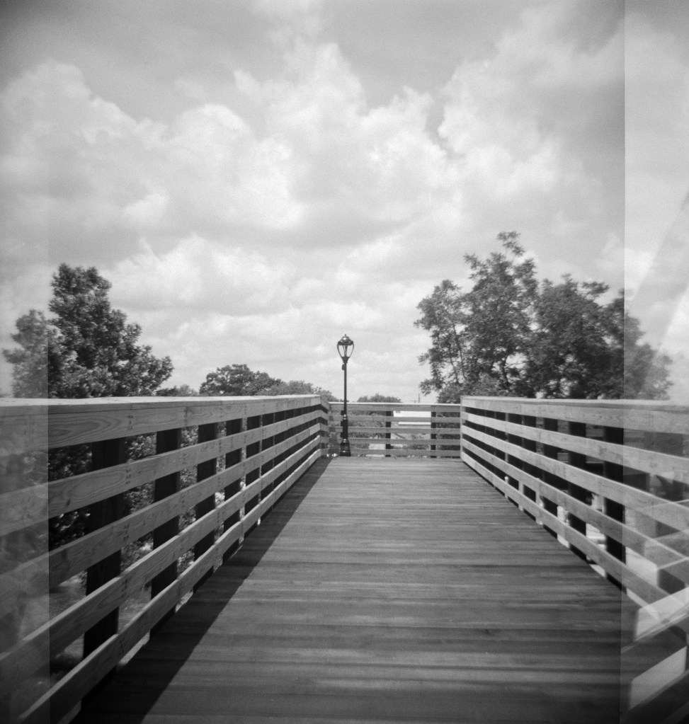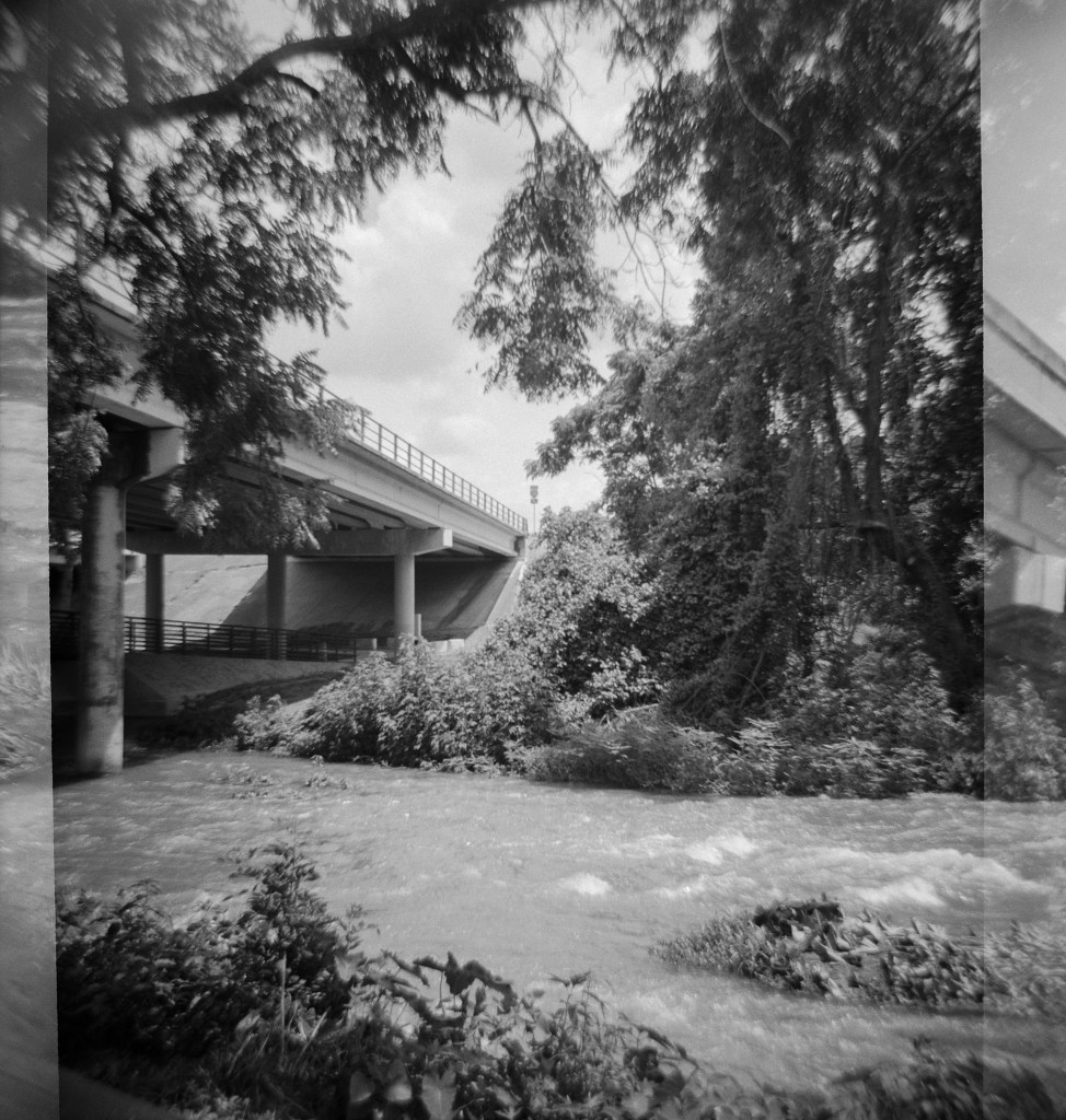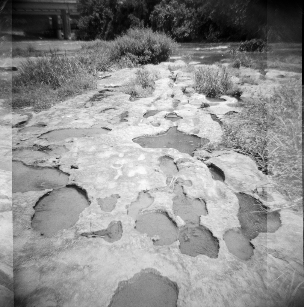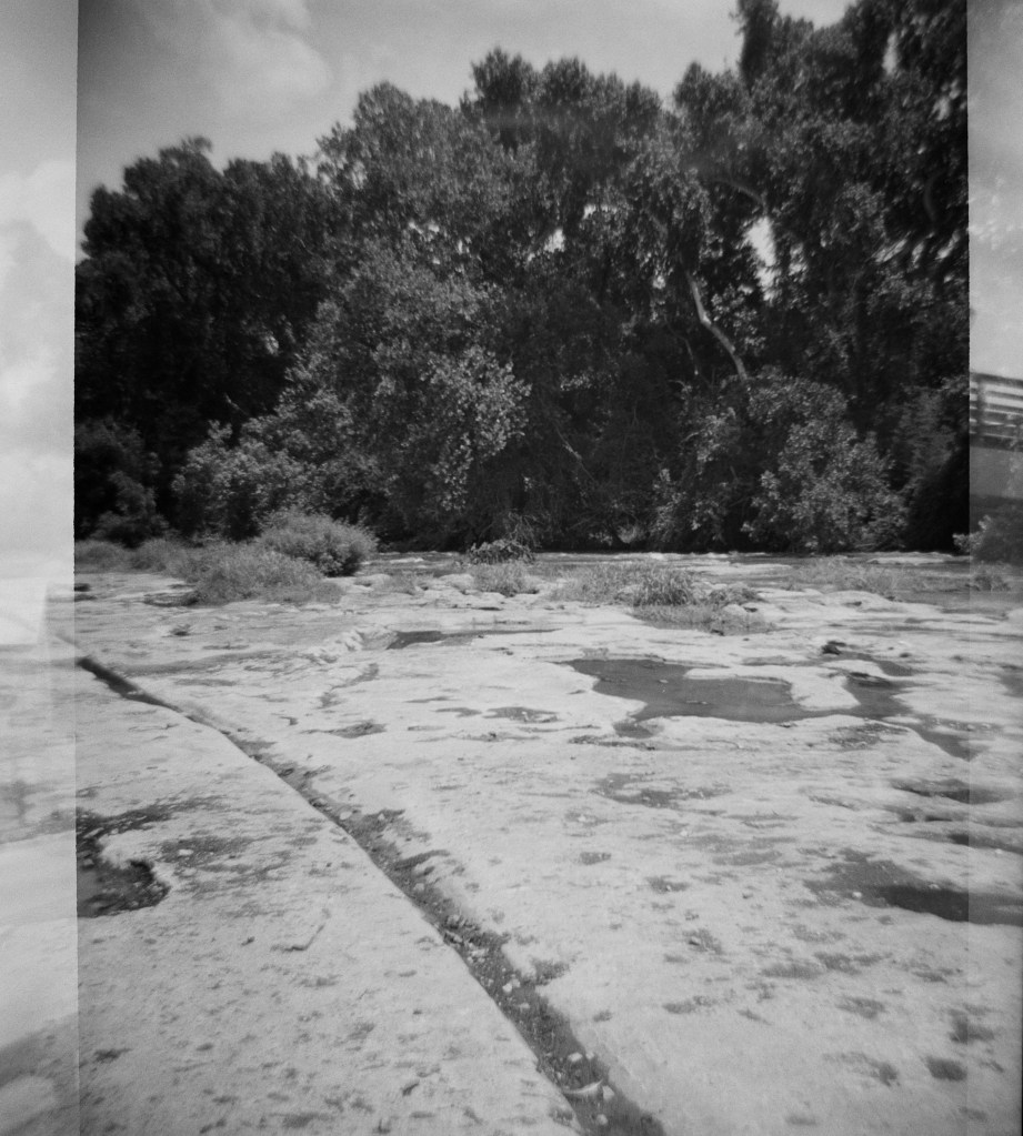 For July’s Frugal Film Project outing, I took my Diana F to the new bridge and trail project the city of Round Rock has been working on at Chisholm Trail Road. I’ve been there many times, since it’s also the location of the famous Round Rock for which the city is named, and I wanted to see how the project was coming. I wasn’t disappointed!